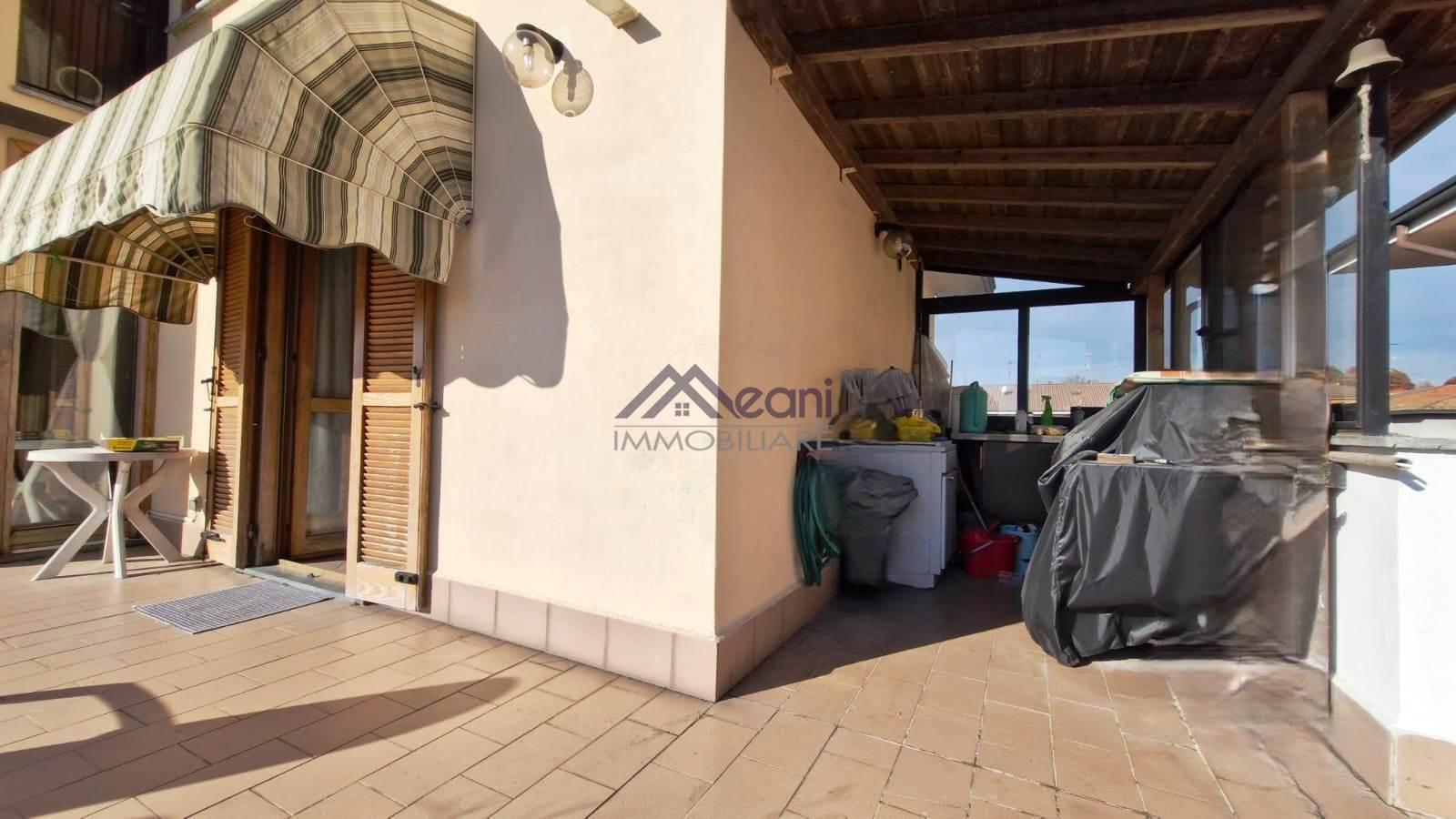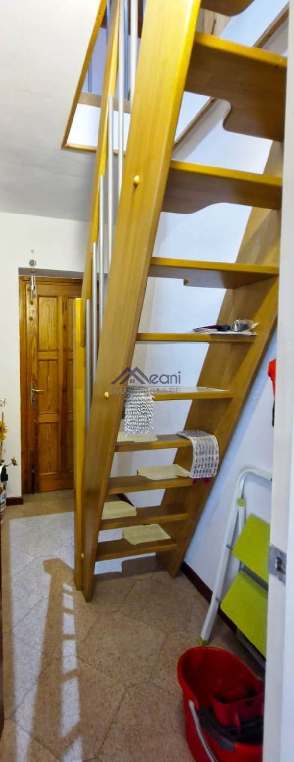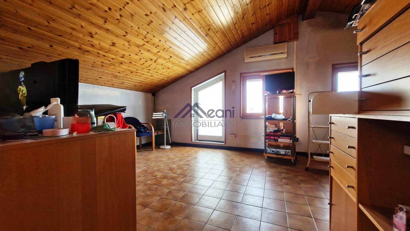 Composizione: ingresso, soggiorno luminoso con camino e accesso a terrazzo, cucina abitabile con ripostiglio/dispensa e terrazzo, balcone perimetrale che circonda la zona notte, camera matrimoniale con cabina armadio, seconda camera, due bagni finestrati, uno con vasca e l'altro con doccia. Attraverso la scala interna, si accede al sottotetto con locali deposito e possibilità di personalizzazione e predisposizione per un bagno.