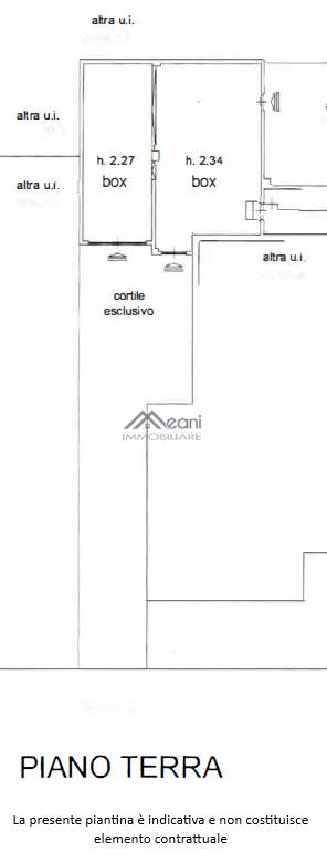 Al piano Terra troviamo il corsello/cortile di proprietà ad uso esclusivo con cancello elettrico e l' utorimessa di 64 mq. catastali, adatta a due auto.