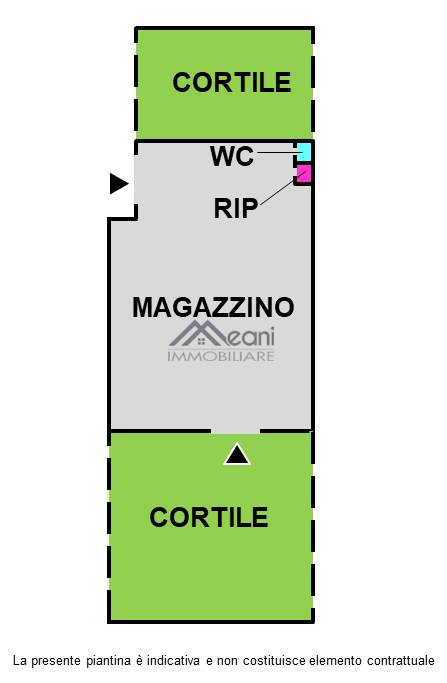L'immobile è munito di un cortile di 300 mq.ca con accesso comune utilizzabile a titolo esclusivo, per carico/scarico bilici e deposito merci.