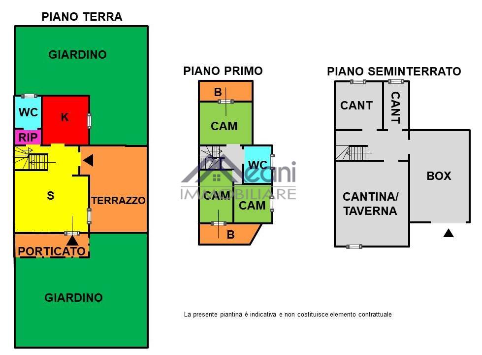 Piano Seminterrato: grande taverna/cantina con camino e riscaldamento, oltre al box doppio di 34 mq.ca. con accesso diretto all'abitazione.